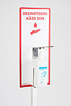Stabiilne ja kompaktne statiivil kätedesinfitseerija. Manuaalsesse desojaama sobib 1L kandiline Chemi-Pharm'i pudel.